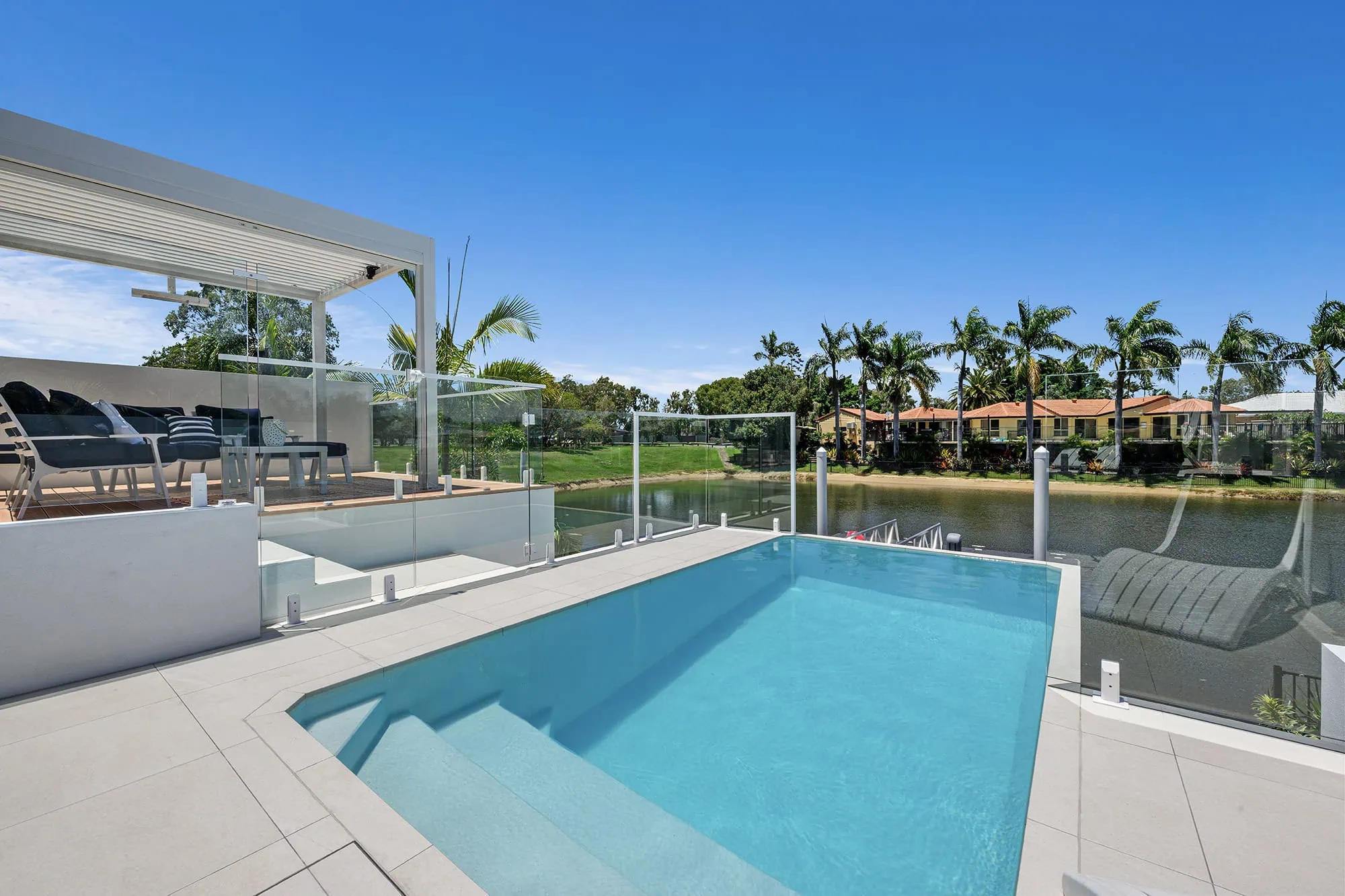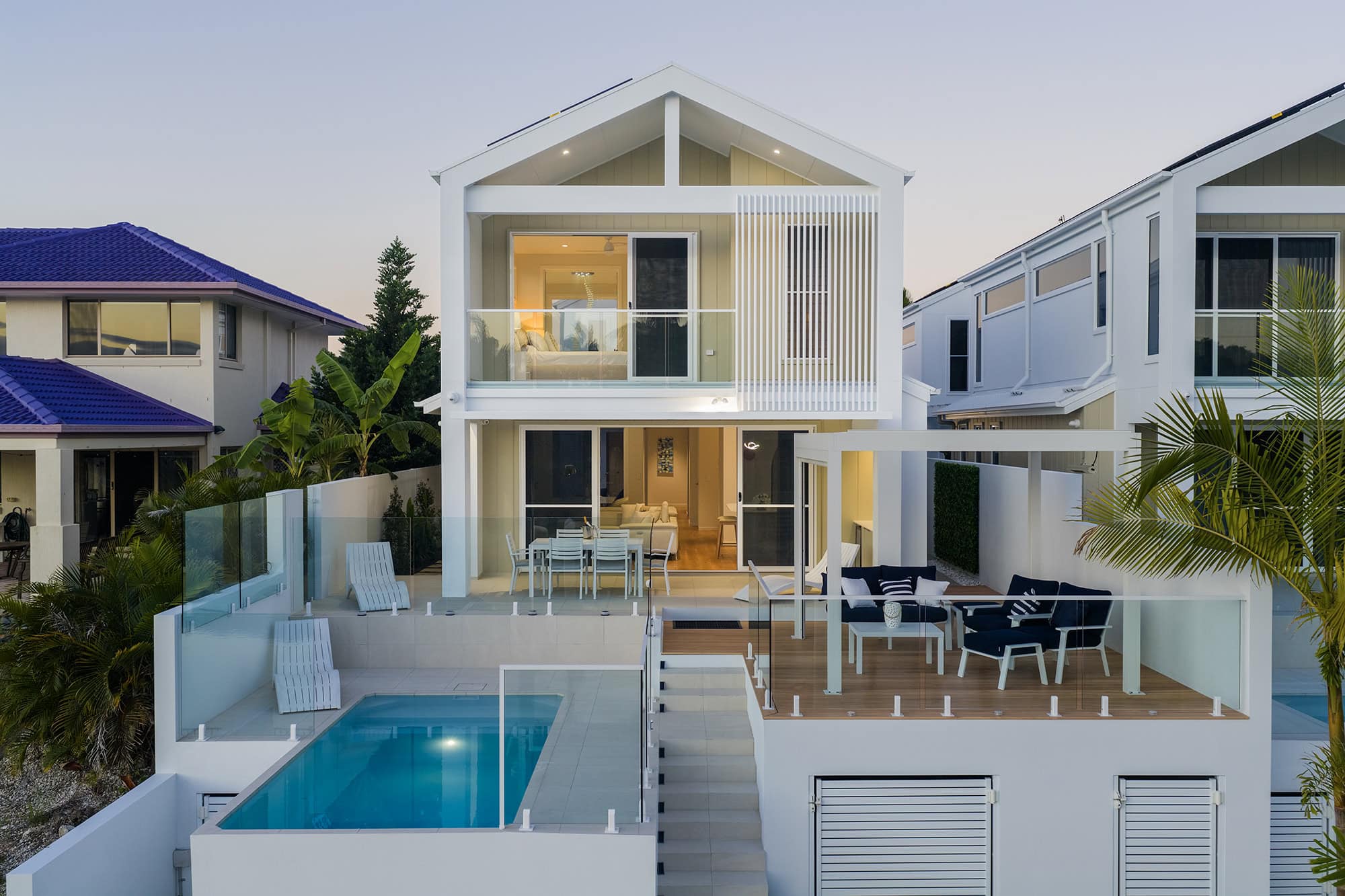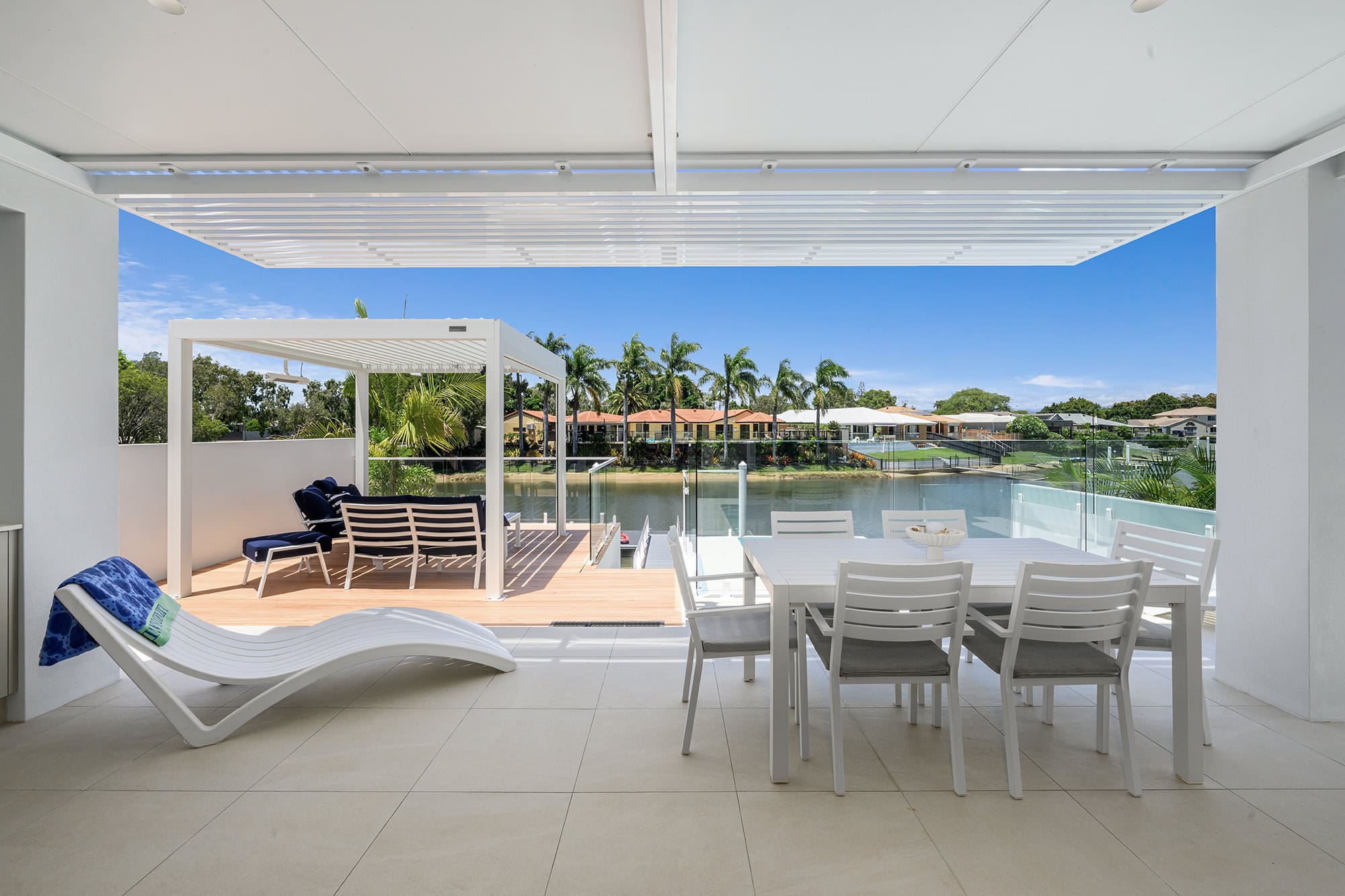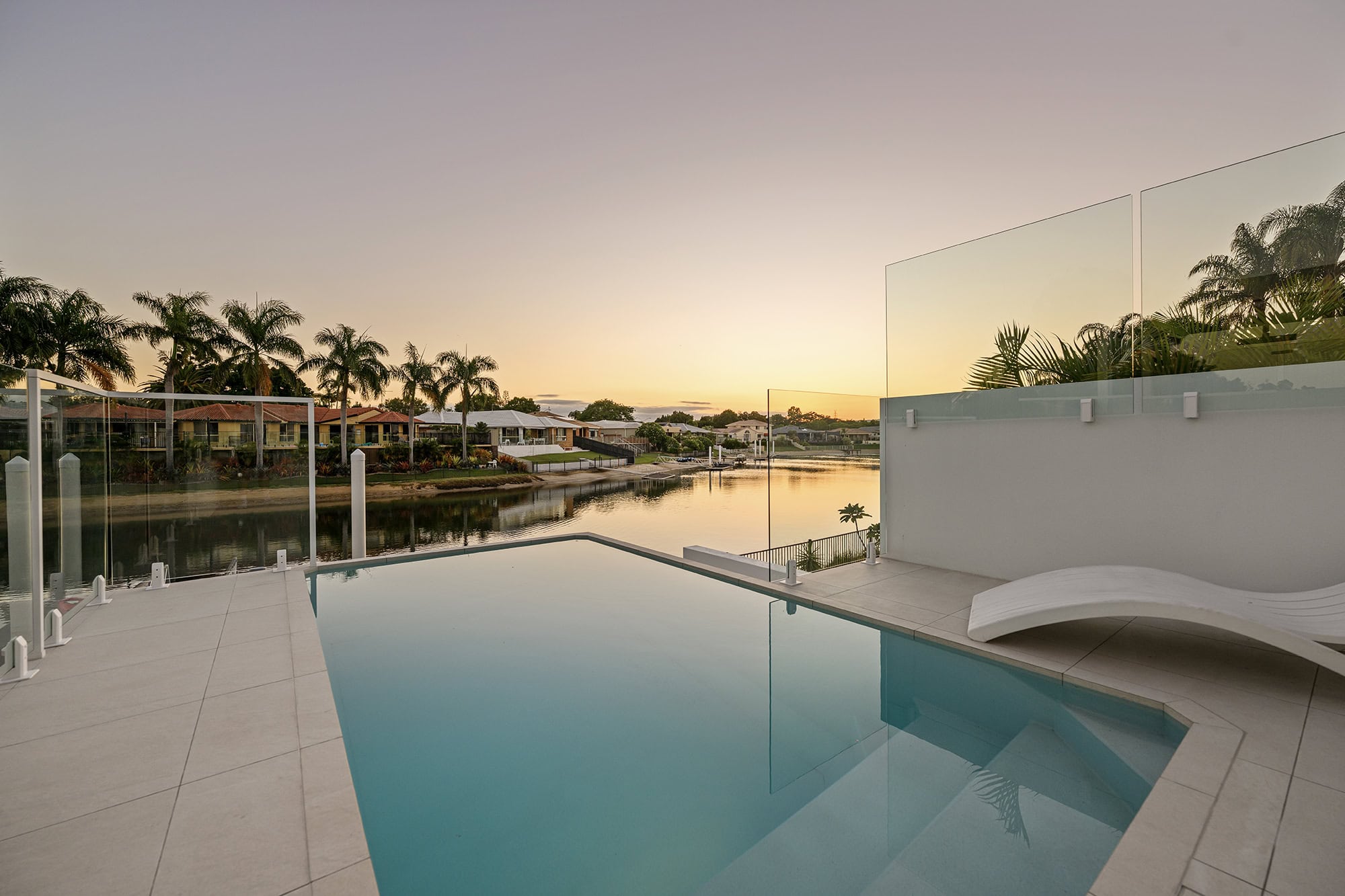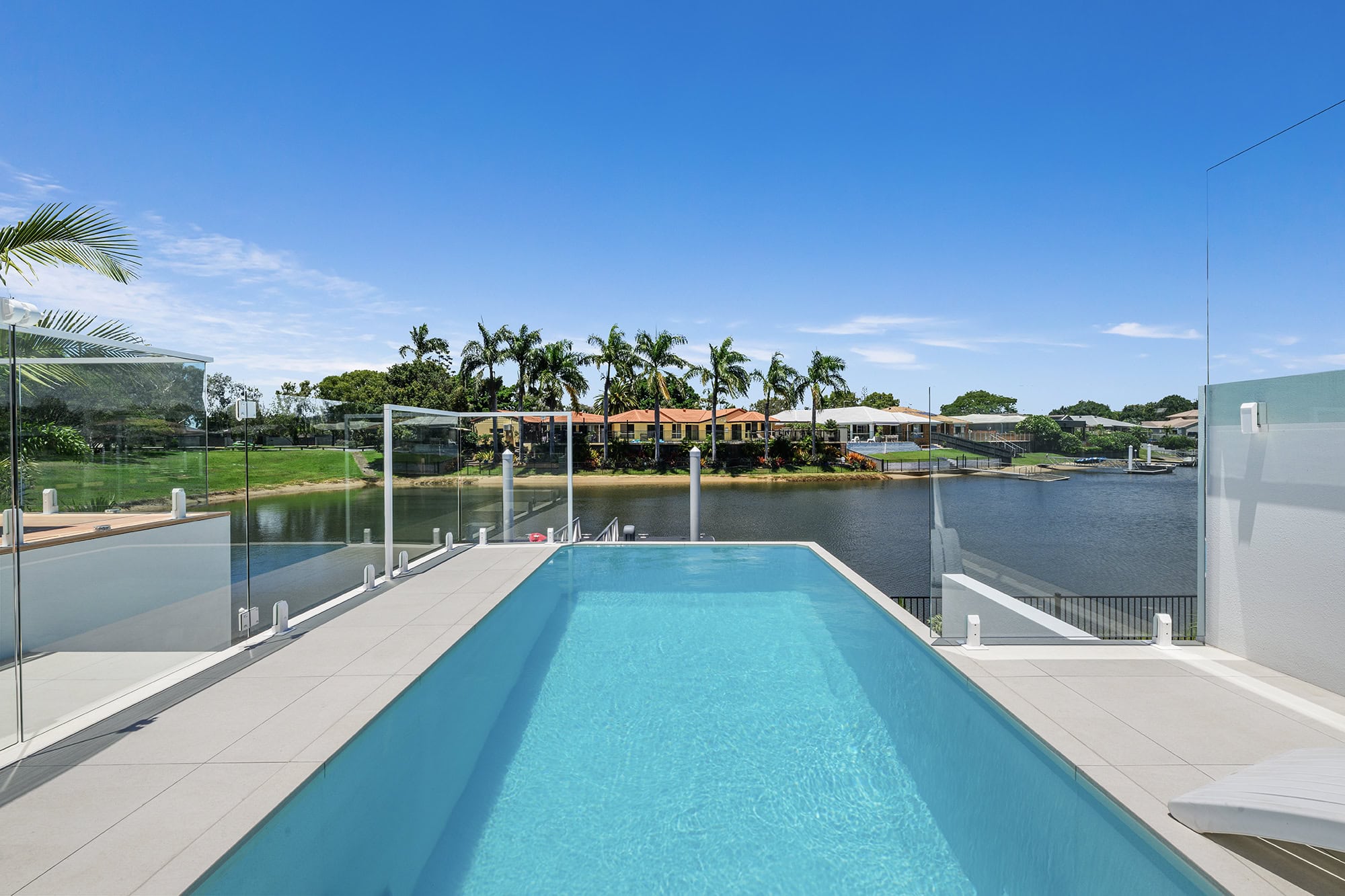 This luxury home offers a piece of paradise with an ultra-modern design and spacious layout overlooking the sparkling pool and Moreton bay. Designed and built by our multi-award-winning team to the highest of luxury standards, utilising elegant fixtures and fittings and Italian stone, this unique residence has been purposely designed to incorporate the expansive waterfront with perfect views from every corner.