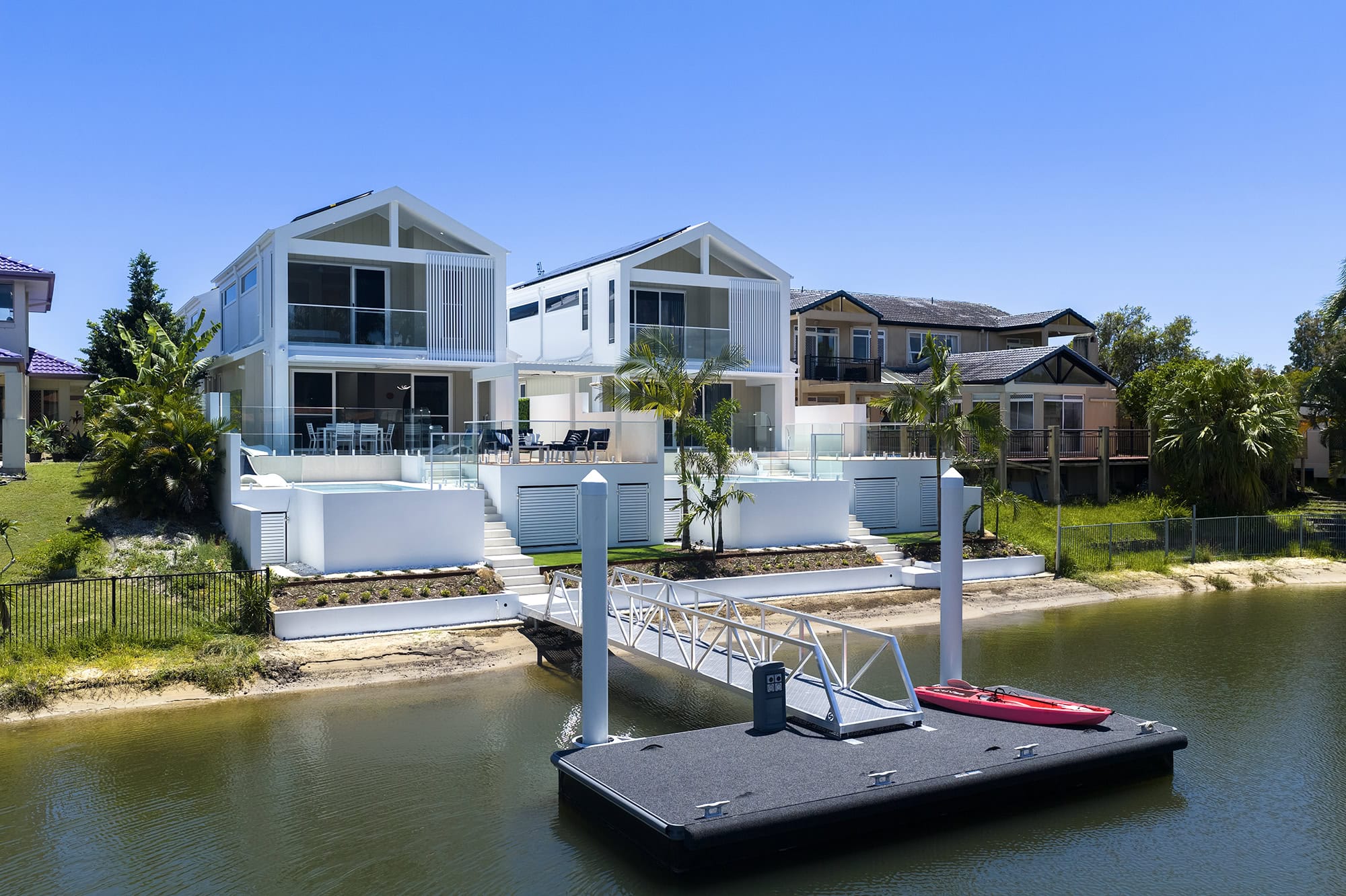 A serene waterfront residence where thoughtful architecture meets relaxed coastal elegance. 20A Drayton Terrace celebrates light, space, and connection to water. Offering four bedrooms, generous living zones, and a sunlit central courtyard, it’s designed for effortless family living and entertaining. Future-ready with solar and battery storage, EV fast charging, advanced security, and zoned ducted air-conditioning, it delivers comfort and efficiency. A refined kitchen, soaring ceilings, and seamless alfresco spaces frame tranquil water views, a freshwater pool, and timber deck, creating a Gold Coast retreat of luxury.